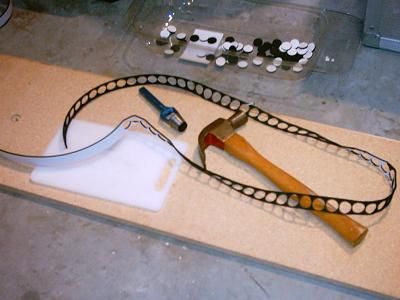I realised that the washers would bruise the polyurathane finish on the slats, so I punched some circles of adhesive rubber foam to apply to the inside of the washers. |