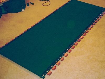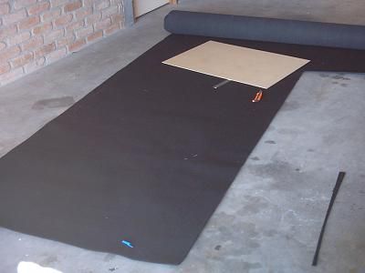 Cutting the carpet to size. |