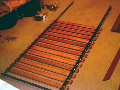 Attaching the slats to the angle iron. |